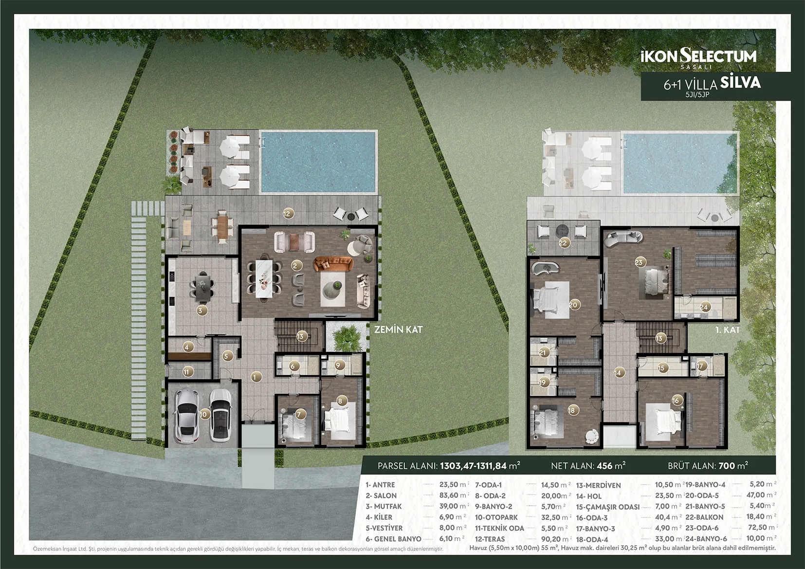 Günümüzün modern mimarisi ile özgün bir şekilde tasarlanmış olan Silva, ailenizin tüm üyelerine konfor ve rahatlık sunmak için özel olarak planlanmıştır. 6 yatak odasıyla geniş bir yaşam alanını bir araya getiren bu muhteşem villa, hem estetik açıdan çarpıcı hem de fonksiyonel bir yaşam alanı sunmaktadır.