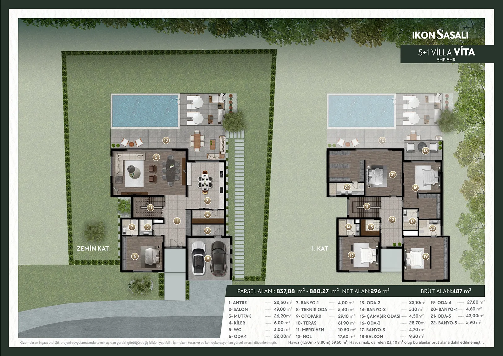 Günümüz modern mimarisinin özgün bir yorumu olan Luna, ailenizin konforunu ve rahatlığını ön planda tutarak özenle tasarlandı. Estetik açıdan büyüleyici detaylarla bezeli 5 yatak odalı bu villa, ferah yaşam alanlarıyla işlevselliği bir araya getiriyor.